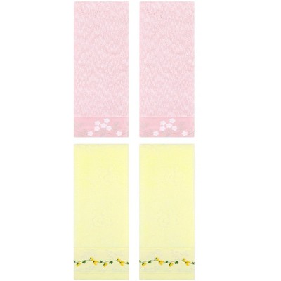 REGALWOVEN 4 Pcs Bathroom Checkered Cotton Face Decorative Hand Towel Set Dark Blue/Beige 14" x 28"/13" x 29"