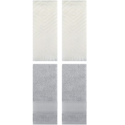REGALWOVEN 4 Pcs Bathroom Decorative Cotton Soft Absorbent Sold Striped Hand Towel Light Grey/Orange 14" x 30"/13" x 29"