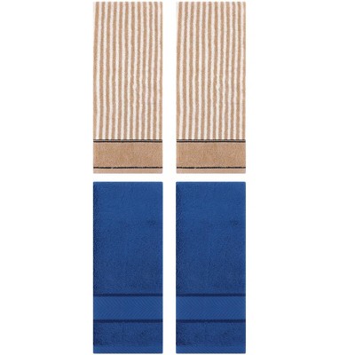 REGALWOVEN 4 Pcs Bathroom Decorative Cotton Soft Absorbent Sold Striped Hand Towel Navy Blue/Brown 14" x 30"/13" x 29"