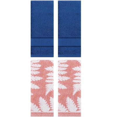 REGALWOVEN 4 Pcs Bathroom Decorative Cotton Soft Absorbent Sold Striped Hand Towel Navy Blue/Pink 14" x 30"/13" x 29"