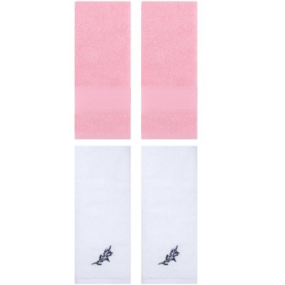 REGALWOVEN 4 Pcs Bathroom Decorative Cotton Soft Absorbent Sold Striped Hand Towel Pink/Brown 14" x 30"/13" x 29"
