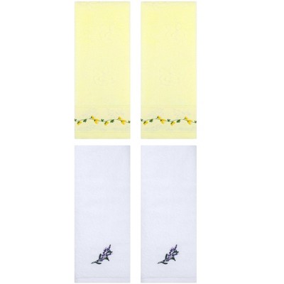 REGALWOVEN 4 Pcs Bathroom Home Decor Cotton Soft Absorbent Floral Embroidered Hand Towel 13" x 29" White/Purple