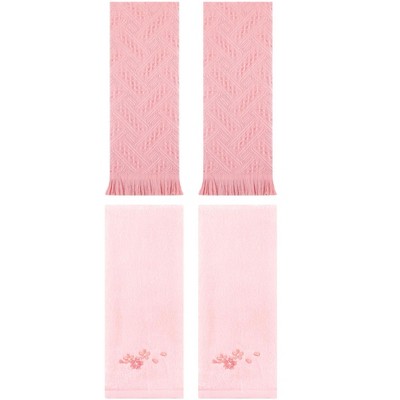 - 4 pcs hand towels, Floral Embroidered hand towels: 2pcs, 13" x 29", 100% cotton ; Geometry Pattern hand towels: 2pcs, 13" x 29", 100% cotton