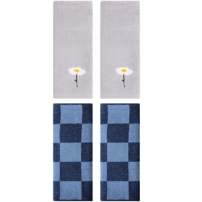 REGALWOVEN 4 Pcs Bathroom Hotel and Spa Cotton Hand Towels Light Cyan/Purple 13" x 30"/14" x 28"