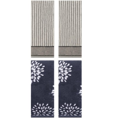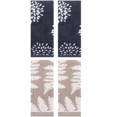 REGALWOVEN 4 Pcs Bathroom Pure Cotton Absorbent Soft Decorative Hand Towel Blue/Orange