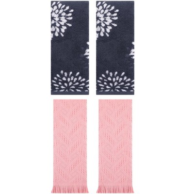 REGALWOVEN 4 Pcs Bathroom Cotton Absorbent Soft Decorative Hand Towel Set Blue/Pink