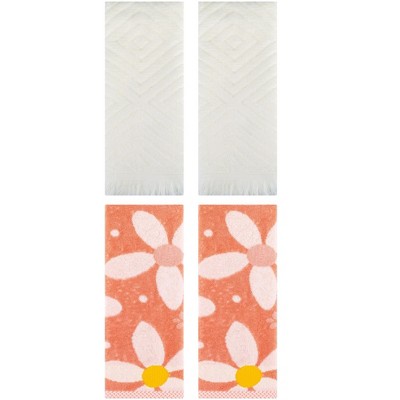 - 4 pcs hand towels, Floral Pattern hand towels: 2pcs, 13" x 29", 100% cotton ; Waffle Cotton hand towels: 2pcs, 13" x 29", 100% cotton
