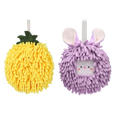 REGALWOVEN 4 Pcs Comfortable Soft Absorbent Chenille Ball Fuzzy Hand Towel Yellow/Purple 6" x 6"/7" x 7"