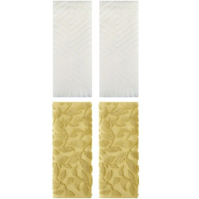 REGALWOVEN 4 Pcs Cotton Bathroom Absorbent Soft Boho Hand Towel Yellow/Beige 14" x 30"/13" x 29"