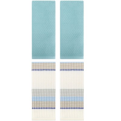 - 4 pcs hand towels, Solid Waffle hand towels: 2pcs, 13" x 30", 100% cotton ; Geometric Pattern hand towels: 2pcs, 14" x 30", 100% cotton