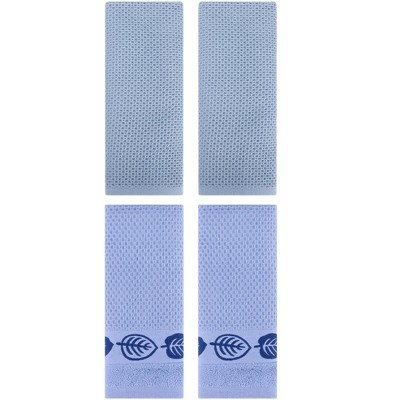 REGALWOVEN 4 Pcs Cotton Bathroom Decorative Hand Towels Steel Blue/Green 13" x 30"/13" x 29"