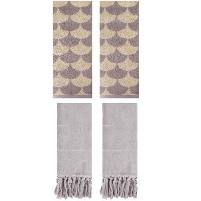 - Hand towels feature fringe tassels for a stylish look