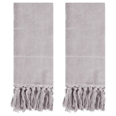 - Hand towels feature fringe tassels for a stylish look