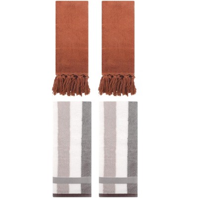 - Hand towels feature fringe tassels for a stylish look