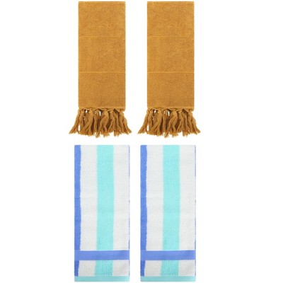 - 4 pcs hand towels, Turkish hand towels: 2pcs, 14" x 30", 100% cotton ; Geometric hand towels: 2pcs, 13" x 29", 100% cotton