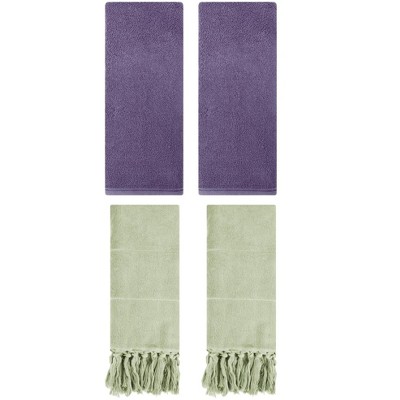 REGALWOVEN 4 Pcs Cotton Soft Absorbent Decorative Bathroom Hand Towel Green/Yellow 14" x 30"/13" x 30"