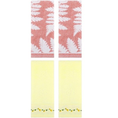 - 4 pcs hand towels, Leaves Pattern hand towels: 2pcs, 13" x 29", 100% cotton ; Geometric Patterns hand towels: 2pcs, 13" x 29", 100% cotton