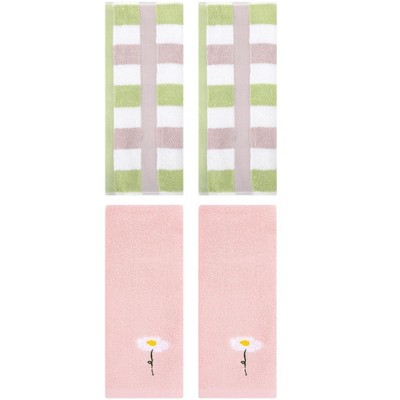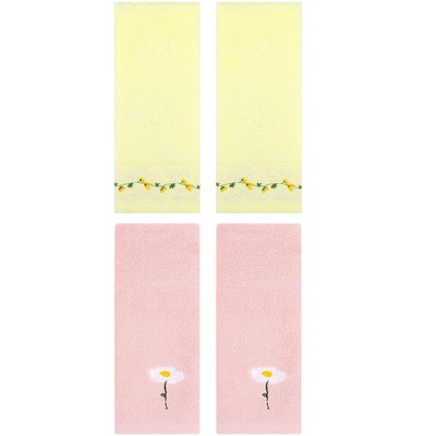 REGALWOVEN 4 Pcs Cotton Soft Absorbent Floral Pattern Hand Towel