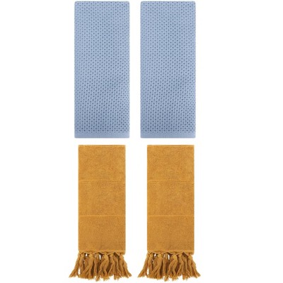 REGALWOVEN 4 Pcs Cotton Soft Absorbent Home Bathroom Decorative Hand Towel Yellow 14" x 30"/13" x 27"