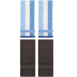 - 4 pcs hand towels, Striped hand towels: 2pcs, 13" x 29", 100% cotton ; Solid Striped hand towels: 2pcs, 14" x 30", 100% cotton