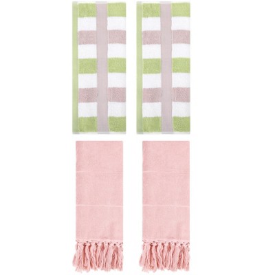 Includes 4 hand towels, 14 x 30 inches and 13 x 29 inches