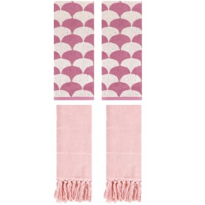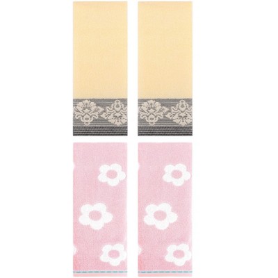 REGALWOVEN 4 Pcs Cute Floral Pattern Cotton Bathroom Soft Absorbent Hand Towel Pink/Orange 14" x 30"/13" x 29"