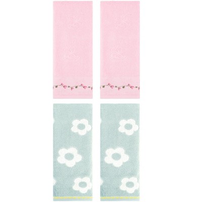 REGALWOVEN 4 Pcs Cute Floral Pattern Soft Absorbent Hand Towel for Bathroom Green/Yellow 14" x 30"/13" x 29"