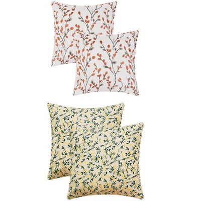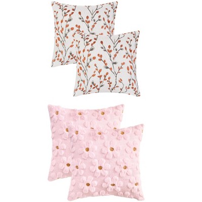 REGALWOVEN 4 Pcs Floral Embroidered Throw Pillow Cases for Sofa, Living Room 18" x 18" Orange Flower/Flower-3