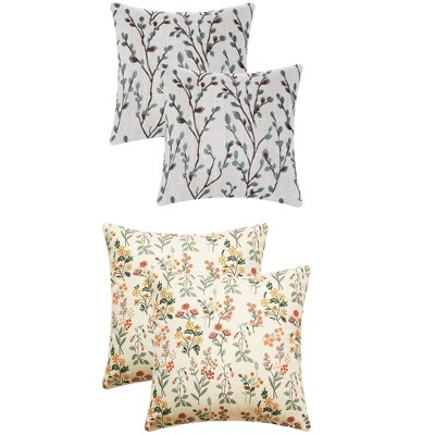 - 4 pcs throw pillow covers, floral embroidery pillow covers: 2pcs,100% spandex; flower plant pillow covers: 2pcs, 100% polyester