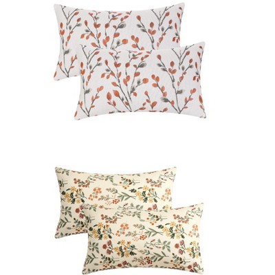 REGALWOVEN 4 Pcs Floral Pattern Throw Pillow Cases for Home Decor Orange Flower/Green 12" x 20"