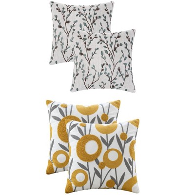- 4 pcs throw pillow covers, small floral embroidery pillow covers: 2pcs, 100% spandex; big floral pillow covers: 2pcs, 100% polyester