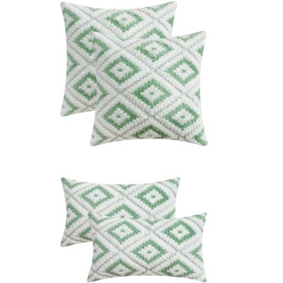 REGALWOVEN 4 Pcs Modern Strip Decorative Throw Pillow Covers for Couch Bed Living Room Green 12" x 20"/18" x 18"