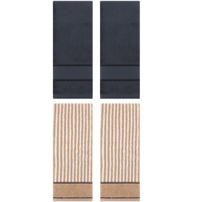 REGALWOVEN 4 Pcs Soft Absorbent Bathroom Decorative Hand Towel Set for Kitchen Dark Grey/Light Yellow 14" x 30"/13" x 29"