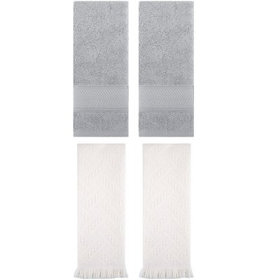 REGALWOVEN 4 Pcs Soft Absorbent Bathroom Decorative Hand Towel Set for Kitchen Light Grey/Light Yellow 14" x 30"/13" x 29"
