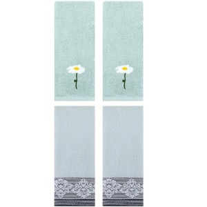 REGALWOVEN 4 Pcs Soft Absorbent Floral Pattern Hand Towels