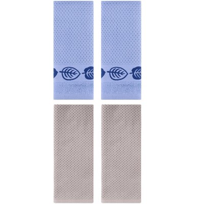 REGALWOVEN 4 Pcs Solid Bathroom Hotel and Spa Waffle Cotton Hand Towels Camel/Blue 13" x 30"/13" x 27"