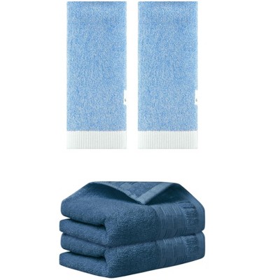 - 4 pcs hand towels, solid plaid pattern hand towels: 2pcs, 14" x 30", 70% cotton, 30% polyester; solid striped hand towels: 2pcs, 14" x 30", 100% cotton