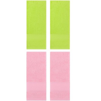 REGALWOVEN 4 Pcs Solid Textured Cotton Soft Absorbent Decorative Hand Towel Light Green/Pink 13" x 30"/14" x 30"