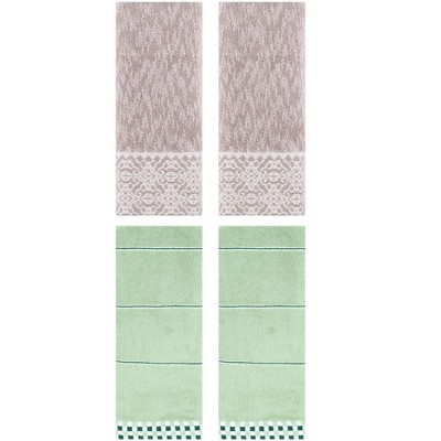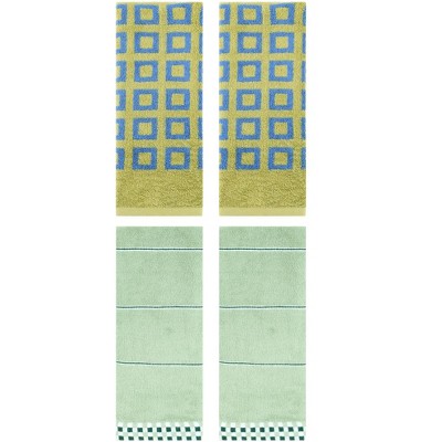 REGALWOVEN 4 Pcs Striped Checked Print Absorbent Soft Decorative Bathroom Hand Towel 14 x 30 Inch