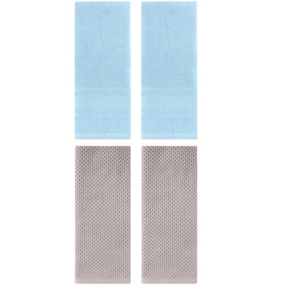 REGALWOVEN 4 Pcs Waffle Soft Absorbent Cotton Hand Towel Camel/Blue 13" x 30"/13" x 29"