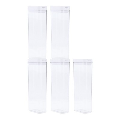 Stackable Design: These clear food canisters with lids are airtight and have been specially designed to save space, and they are stackable and will easily fit into your pantry or cupboard, which allows you to make full use of every inch of your home and kitchen. Making Storing Easier: These plastic pantry organizers and storage are versatile enough to work well on your kitchen countertop, cabinets, and pantry. You can use them to store and serve a variety of foods.