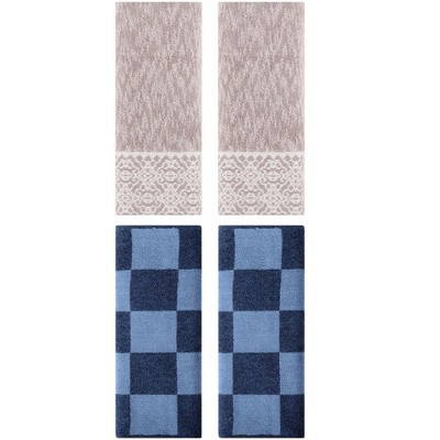 REGALWOVEN Bathroom Checkered Cotton Face Decorative Hand Towel Set 14" x 28" Dark Blue 2 Pcs Dark Blue/Green 14" x 28"/13" x 28"