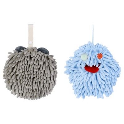 REGALWOVEN Bathroom Cute Decorative Absorbent Soft Chenille Hanging Hand Towel 7" x 7" 2 Pcs