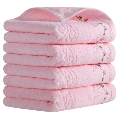REGALWOVEN Bathroom Home Decor Cotton Soft Absorbent Floral Embroidered Hand Towel 13" x 29" Pink 4 Pcs