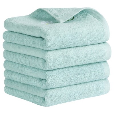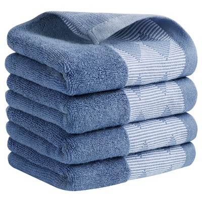 REGALWOVEN Bathroom Kitchen Cute Animal Children Hand Towels with Hanging Loop 6 Pcs Blue-Shiba Inu Dog 9" x 14"