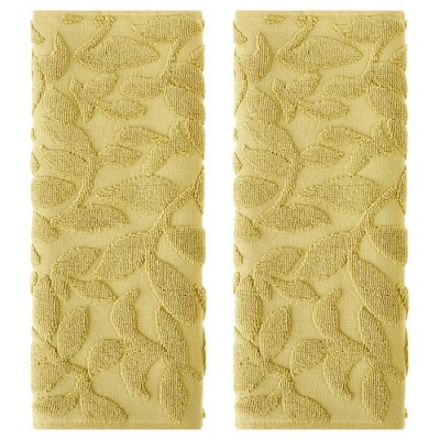 REGALWOVEN Bathroom Pure Cotton Soft Absorbent Floral Embroidered Hand Towel 15" x 30" Yellow 2 Pcs