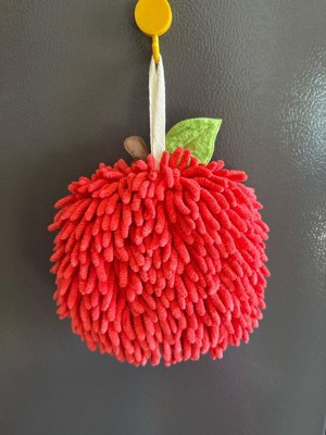 [This review was collected as part of a promotion.] This is a fun, decorative hand towel that can be used in many ways and places such as the kitchen and bathroom. The apple design is round with a 6-inch diameter, and it comes with a hook and adhesive for hanging. It is also portable, so it is useful for taking on the go, for example to the gym. The towel is soft and absorbent and can be washed in the washing machine. I think that the apple looks cute, but my mother disagreed and expressed that all the hanging pieces gave her visual discomfort in the same way that bumps might.