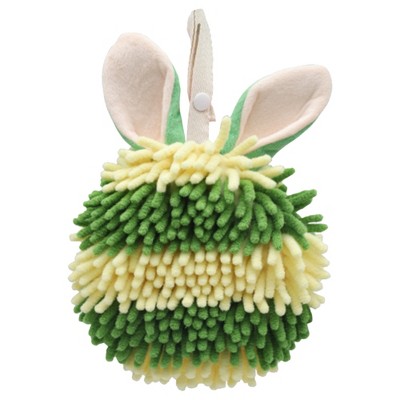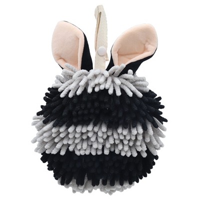 REGALWOVEN Chenille Fluffy Ball Rabbit Shape Soft Absorbent Quick Drying Hand Towel with Hanging Loop 7" x 7" 1 Pc