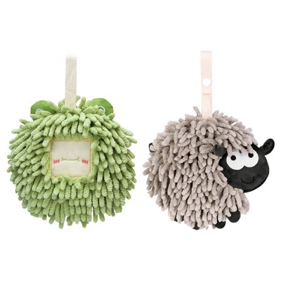 REGALWOVEN Chenille Fuzzy Ball Bathroom Alpaca Fuzzy Soft Absorbent Hanging Towels 7" x 7"/7" x 11" 2 Pcs Green/Blue