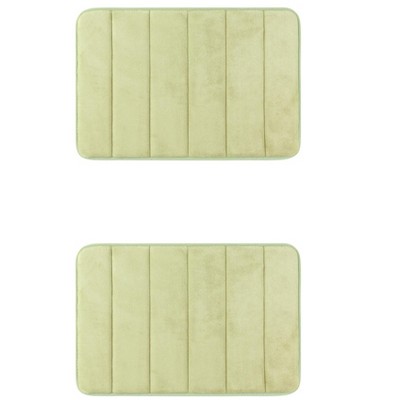 REGALWOVEN Contrasting Color Striped Non-Slip Plush Shaggy Bathroom Mats 2 Pcs Green/Pink 16" x 24"